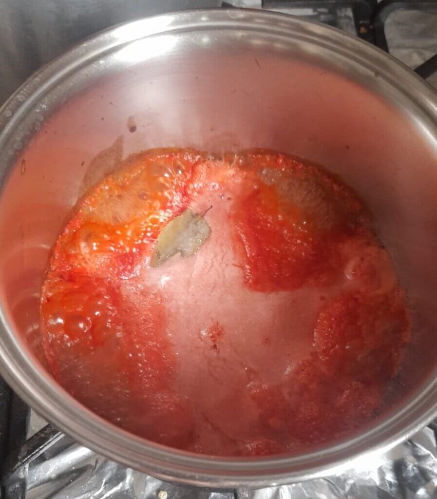 Una vez licuados los jitomates con el ajo se sazona y se deja a que cambie de color.