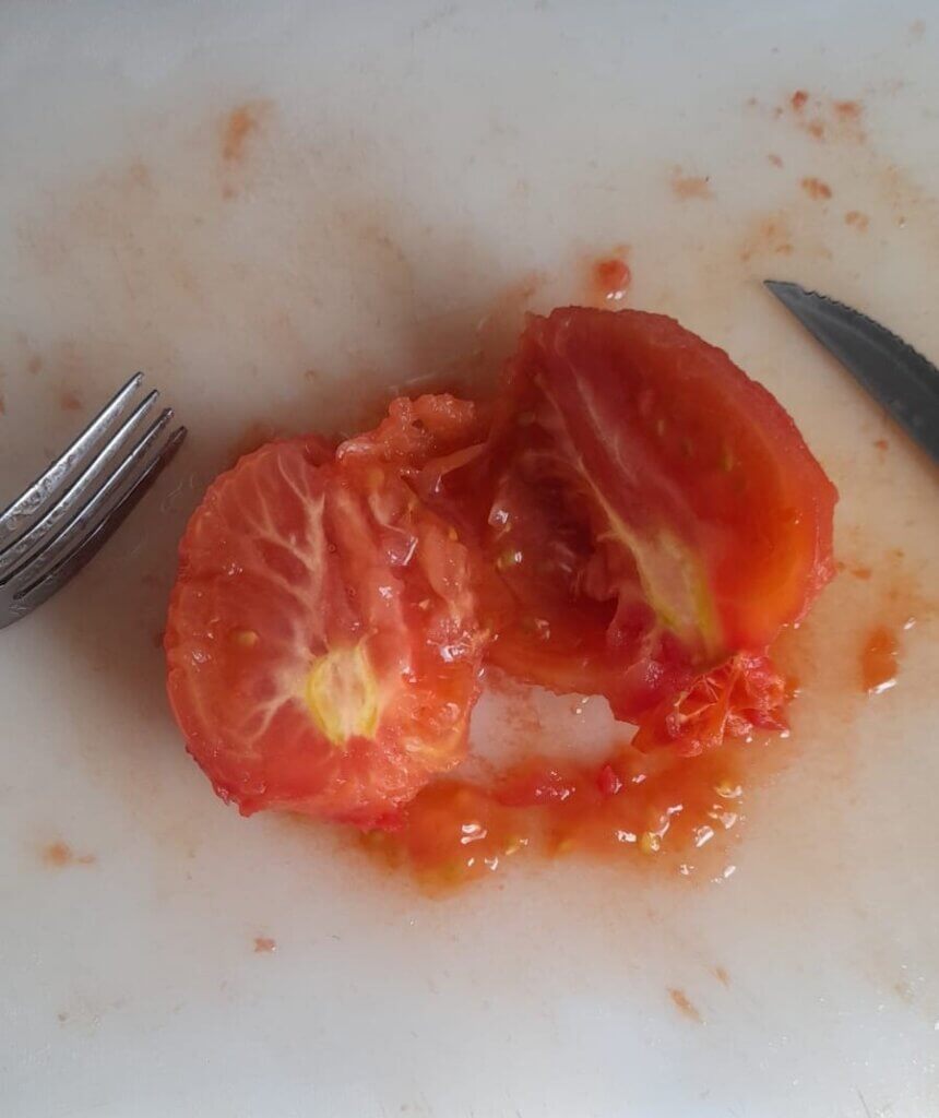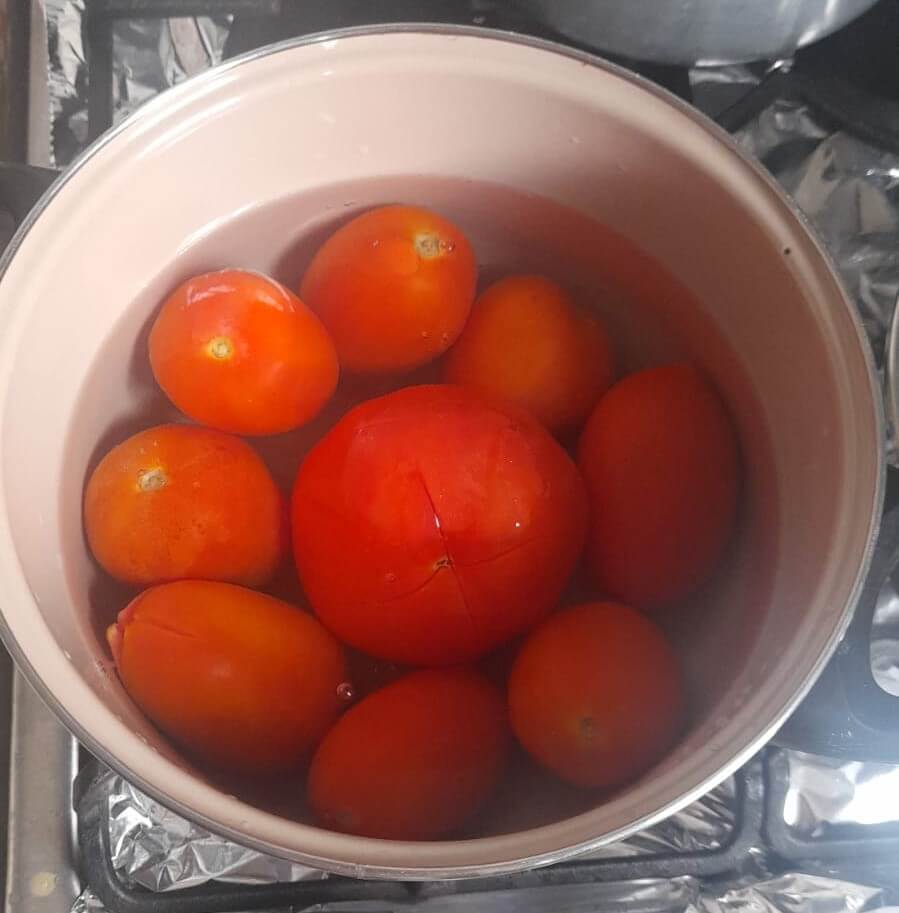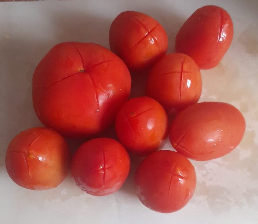Una vez lavados los jitomates hacer un corte para facilitar posteriormente el pelado.